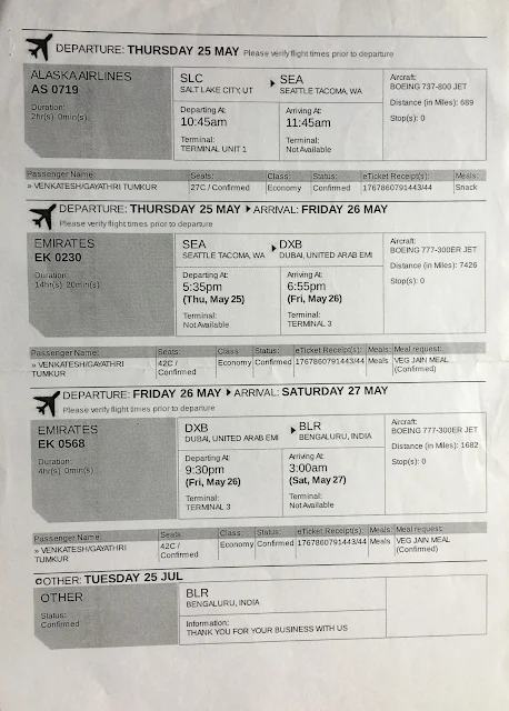 return from Varanasi to Bangalore July 23, 2017